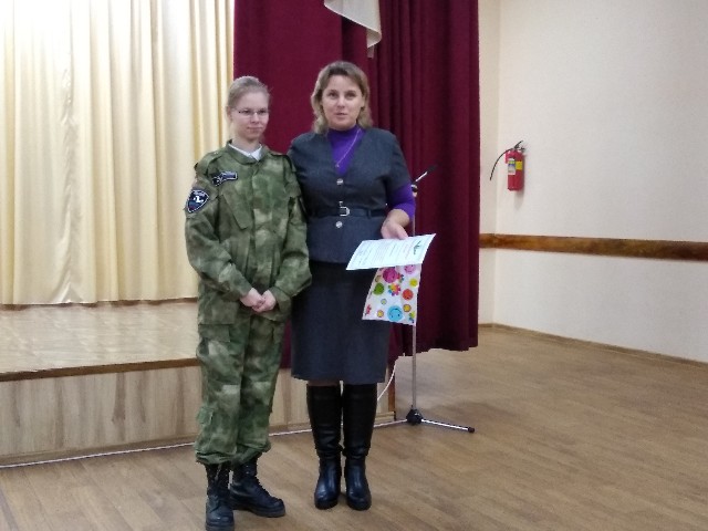 Алексеев Г.В. вручил удостоверения юнармейцам Мошенской школы Лавроновой Арине и Никифоровой Алине.